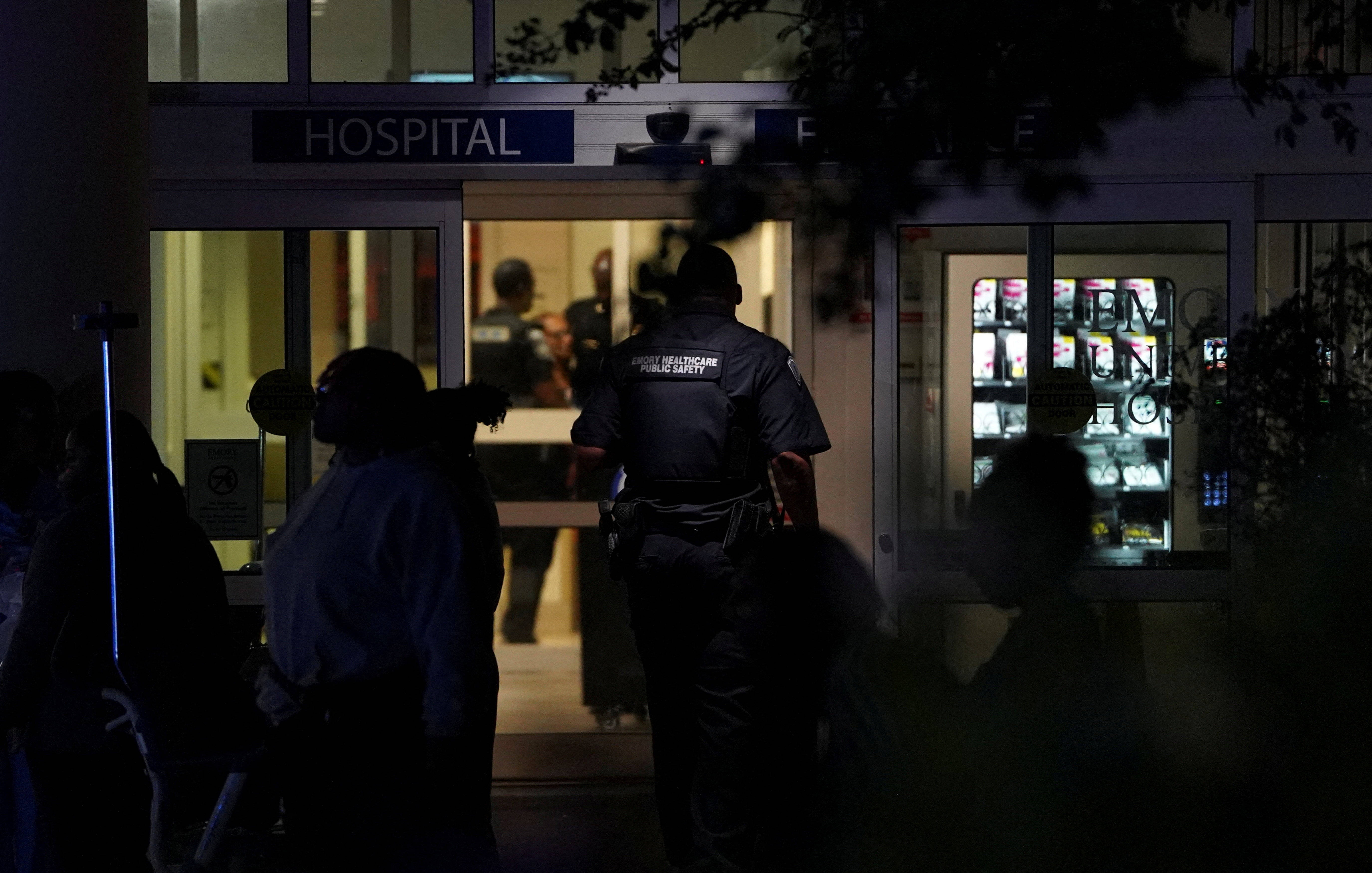 8月8日,在美国亚特兰大市,人们聚集在中枪警察被送至的医院外。 新华社/路透