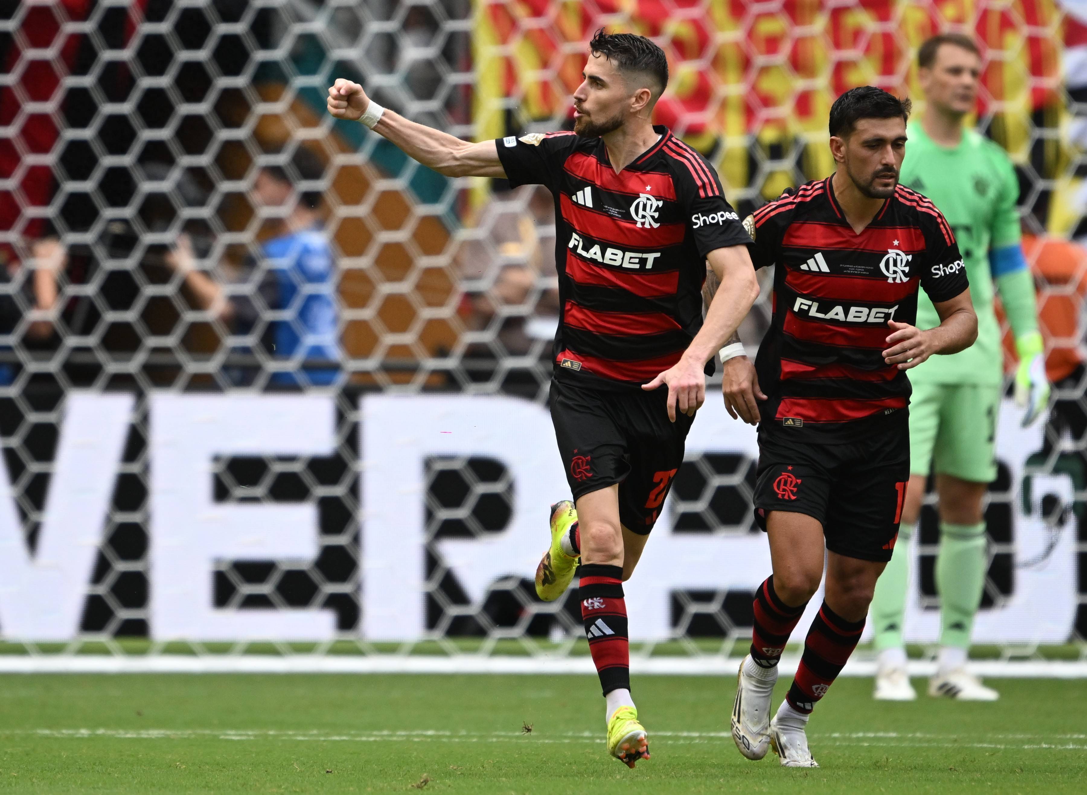 6月29日,弗拉门戈队球员若日尼奥(左)罚中点球后庆祝。新华社记者 吴晓凌 摄